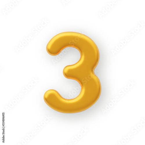 Naklejka premium 3D Gold number 3 on a white background .