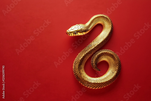 Fototapeta premium 3D gold snake on red background celebrating Chinese New Year