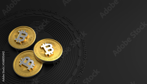 © Sahon, Obraz premium 3d Golden bitcoin coin stock in black background