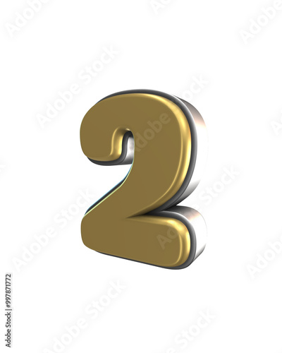 © Vitou CG Art, Naklejka premium 3D Golden Bold Number