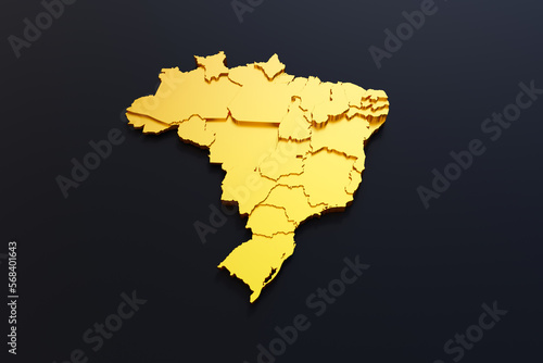 © Serhan, Fototapeta premium 3d Golden Brazil Map on black background
