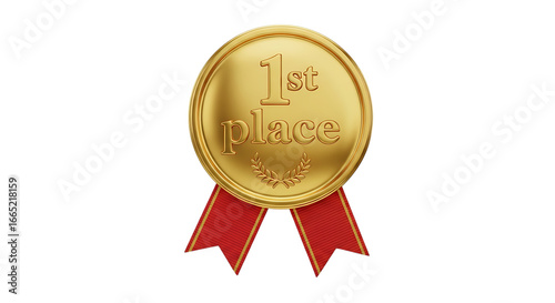 Fototapeta premium 3d golden first place medal isolated on transparent background