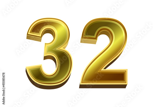 © BakiBullah, Naklejka premium 3d golden number 32 isolated on white background