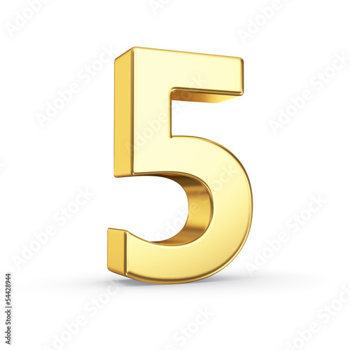 © 123dartist, Fototapeta premium 3D golden number 5 - isolated with clipping path