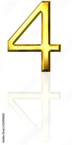 © Georgios Kollidas, Fototapeta premium 3d golden number 4 with reflection