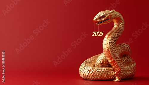 Fototapeta premium 3D golden snake with text "2025" on red background