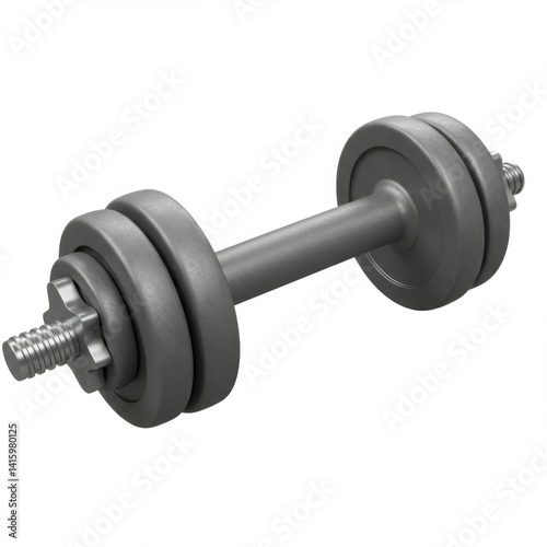 © graphic designer99, Naklejka premium 3D Gray dumbbell equipment for fitness on white background