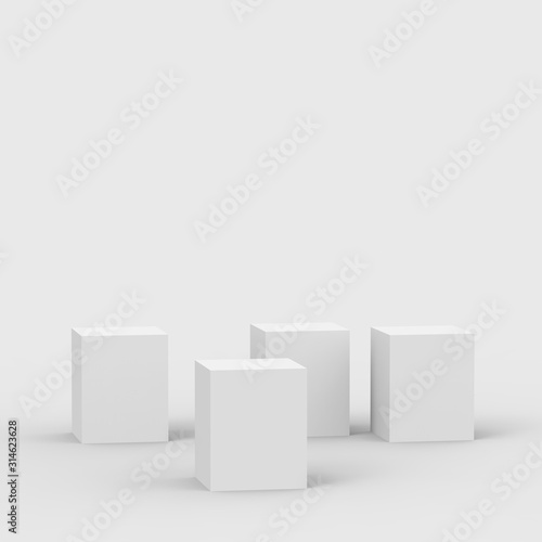 © Mama pig, Obraz premium 3d gray white cube and box podium .. minimal scene studio background. Abstract 3d geometric shape object illustration render. Display for online business product.