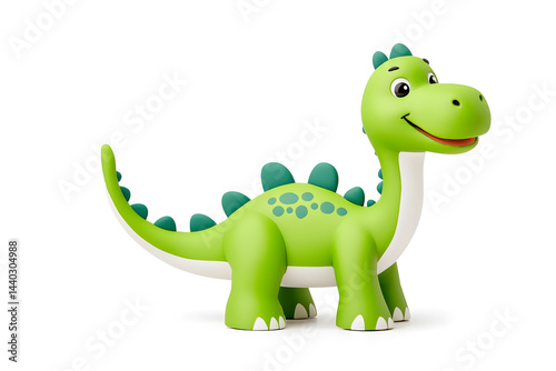 © Oksana_Latysheva, Obraz premium 3d green cute cartoon dinosaur with smile isolated on white background