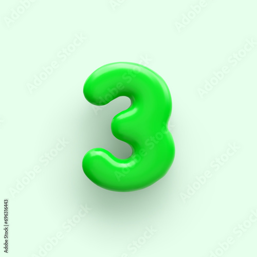Naklejka premium 3D Green number 3 with a glossy surface on a light background .