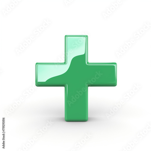 Obraz premium 3D Green Plus Sign on a White Background with Glossy Surface: Modern and...