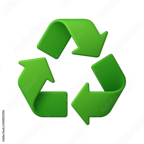 Obraz premium 3D green recycling symbol with three arrows forming a triangle, isolated with...