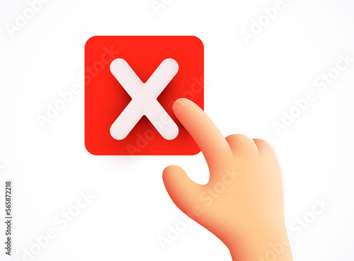 © hobbitfoot, Obraz premium 3d Hand pressing the no button. Wrong answer.