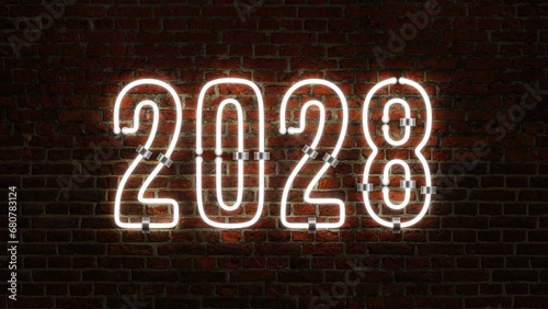 © evilwata, Obraz premium 3D 2028 Happy New Year Neon Light