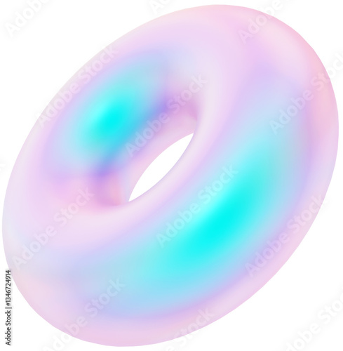 Obraz premium 3d holographic torus shape, iridescent chrome fluid abstract form isolated on...