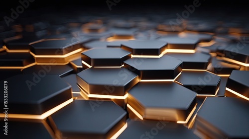 © CLOVER BACKGROUND, Obraz premium 3D Honeycomb Digital Background with Glowing Elements and Depth