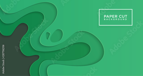 © Alfaza503, Fototapeta premium 3D horizontal background of green paper cut, vector illustration