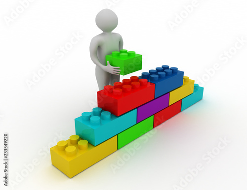 © andrii, Fototapeta premium 3d human stone cube wall puzzle. business concept .3d rendered illustration