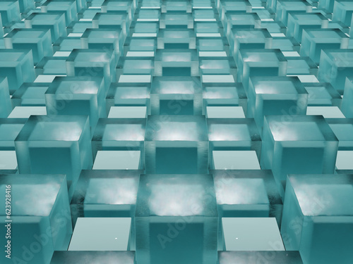 Obraz premium 3d ice cube geometry pattern with blue cube inside it with grunge texture...