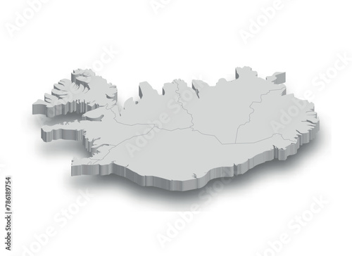 © Katyam1983, Fototapeta premium 3d Iceland white map with regions isolated