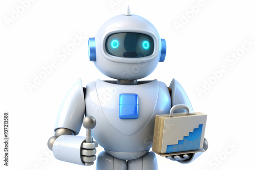 Naklejka premium 3D Icon as Robot advisor and stock portfolio concept as A robot advisor icon paired with a stock portfolio representing the use of AI in managing investment portfolios perfect for isolated vector desi