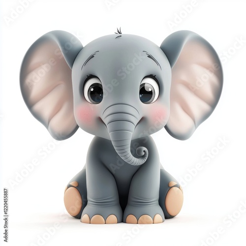 Naklejka premium 3D icon cartoon baby elephant with big floppy ears isolated on a white...