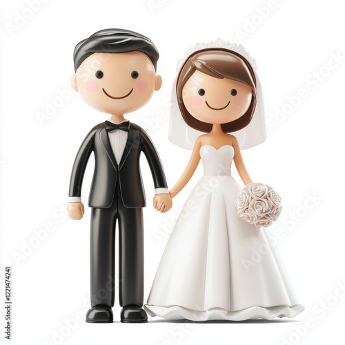 © Svitlana, Fototapeta premium 3D icon cartoon bride and groom holding hands, isolated on a white background