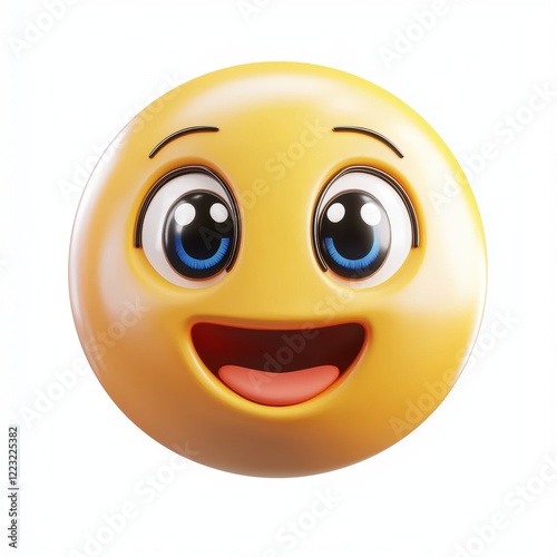© Marina, Fototapeta premium 3D icon cartoon happy smiling emoji with bright eyes, isolated on a white background