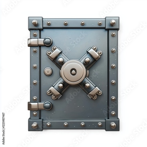 © Svitlana, Fototapeta premium 3D icon cartoon secure vault door with a heavy-duty lock mechanism isolated on a white background