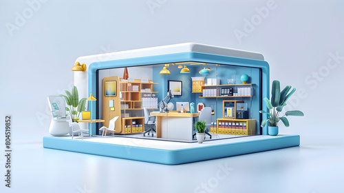 © GG Kenji, Naklejka premium 3D Icon: Dynamic Workplace Concept - Showcase Vibrant Advertisement in Cartoon Style for Business Energy, Collaboration, and Innovation