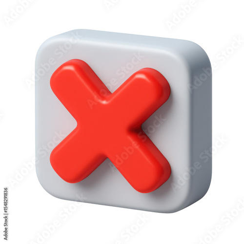 © Sandor, Fototapeta premium 3d icon in plastic style featuring a red delete symbol on a white background, representing technology, design, and digital interfaces for apps and websites.