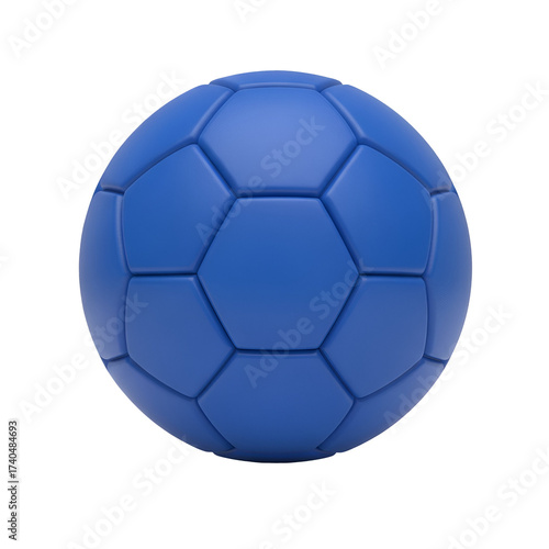 Fototapeta premium 3d icon of a blue soccer ball with hexagonal panels, isolated on transparent...