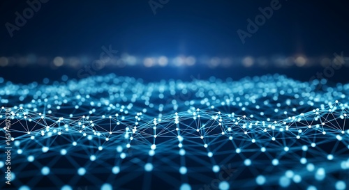 © hsavect1, Fototapeta premium 3d icon of abstract blue digital network of glowing nodes and connecting lines, representing technology, data, and futuristic communication systems