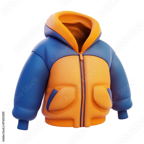 © Light_Creative, Naklejka premium 3d icon of bright orange and blue jacket with modern color scheme design