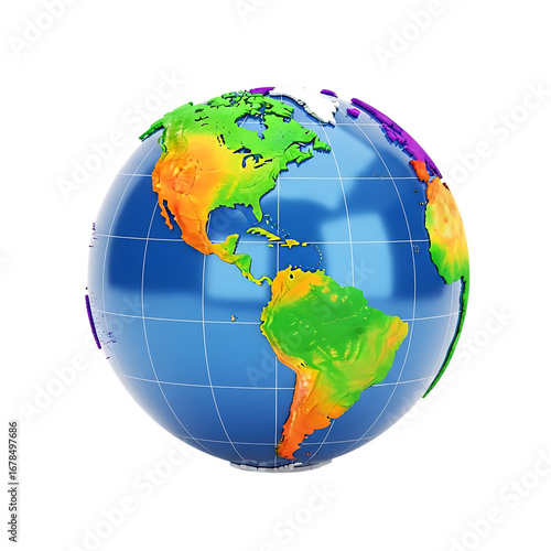 © Stocknetic Pro, Naklejka premium 3d icon of colorful globe isolated on transparent background, representing the world, geography, and international travel, showcasing continents and countries in a vibrant display