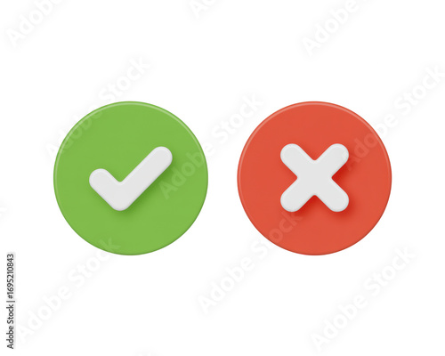 Fototapeta premium 3d icon of green check mark and red cross mark isolated on transparent...
