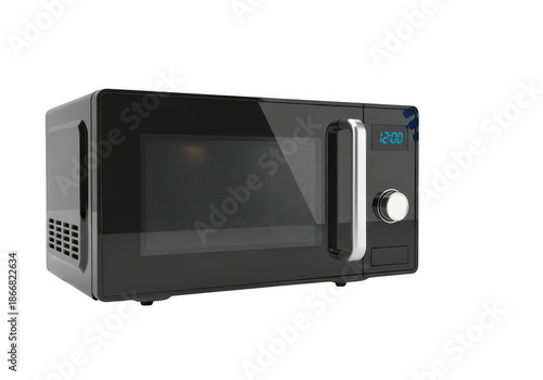 © Jamilul, Fototapeta premium 3d icon of modern black microwave oven with digital display and chrome handle isolated on transparent background
