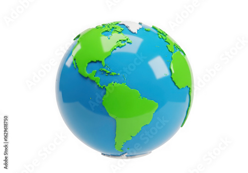 © Jamilul, Naklejka premium 3d icon of stylized globe showing north and south america isolated on transparent background