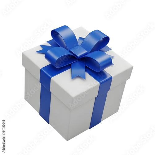 © Pixee, Fototapeta premium 3d icon of white gift box with a blue ribbon and bow isolated on transparent background