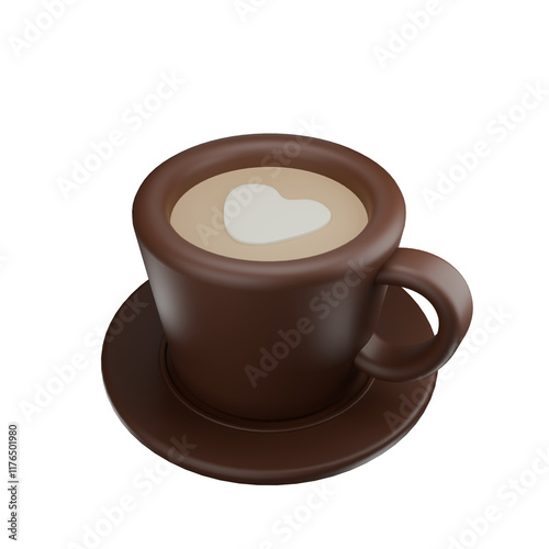© Rex, Obraz premium 3d icon render a cup of cappuccino coffee in the morning