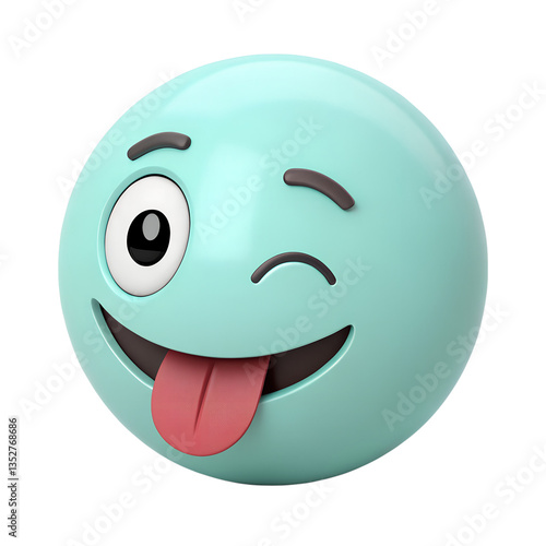 © Sariful, Fototapeta premium 3d icon style, Playful light teal Emoticon with Winking Eye and Tongue Sticking Out