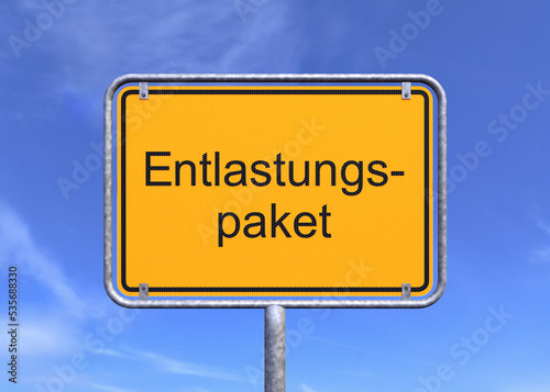 Obraz premium 3d Illustation - Ortsschild - Ortstafel - Entlastungspaket - Himmel - Wolken