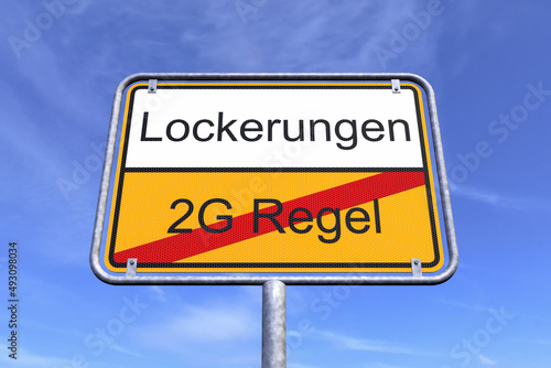 Obraz premium 3d Illustation - Ortsschild - Ortstafel - 2G Regel - Lockerungen - Himmel -...