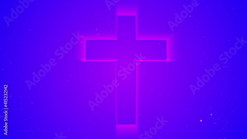 Fototapeta premium 3D illustraion of neon glow cross over blue