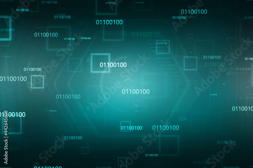 © partheev, Fototapeta premium 2d illustration abstract digital binary data on computer screen