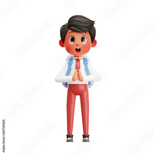© Kafil-Std, Fototapeta premium 3D Illustration Boy Student Wearing a Bag