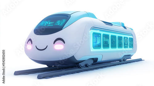 © Lalaland, Naklejka premium 3D Illustration character Maglev Train. A cute, futuristic maglev train character with smiling face, designed for transportation branding or children's media.