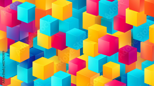 © 92ashrafsoomro, Obraz premium 2d illustration colourful cube elements seamless pattern
