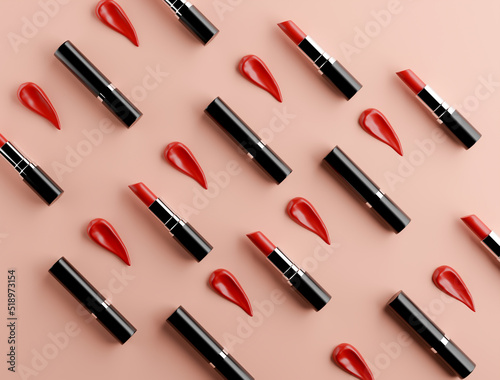 © harit, Obraz premium 3d illustration. Cosmetic lipstick mockup of various styles