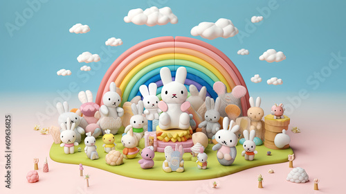 Obraz premium 3d illustration cute creatures rabbit